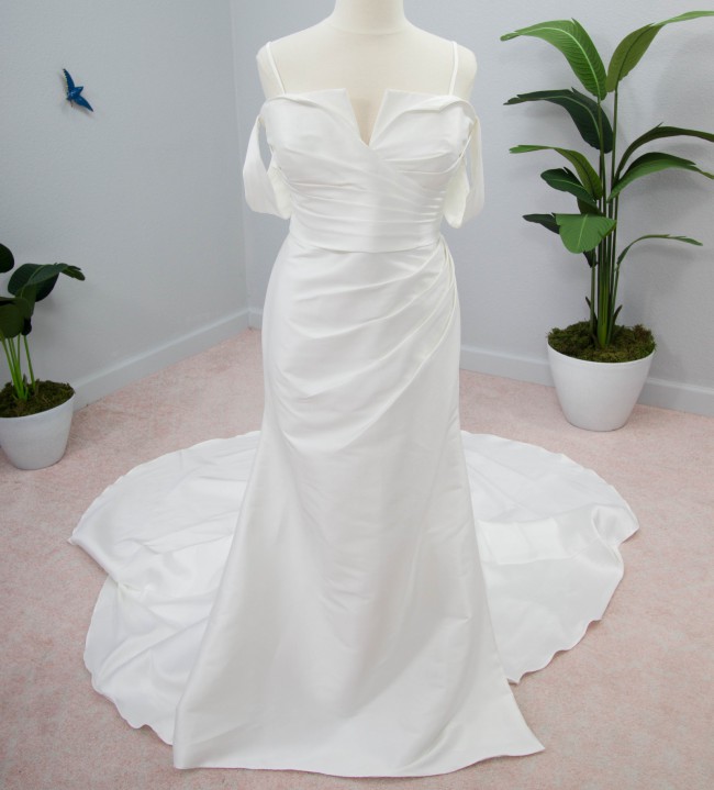 All of our dresses are either samples or new which means they have never been altered. All wedding dresses require some alterations. Typically a hem to length, a bustle, and brought in to be shaped to your body. Wedding dresses can be brought in a size or two on any of your measurements but can only be let out 1-2” depending on the dress. Letting out a dress can be a more tricky alteration and should only be done by a more experienced Bridal seamstress. We typically see alteration costs run between $300-750 depending on the work needed and your local market. We do not provide any alterations services.