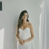 Jane Hill Heritage 02 Huntleigh in excellent condition, professionally tailored and cleaned. This is a Jane Hill top seller! Corset style-waist with boning for a snug fit, sweetheart detailed neckline, signature under bust detailing and beautiful draping. The detachable train creates a perfect ceremony to reception look and covered buttons complete the back train detailing, paired with a thigh high slit.