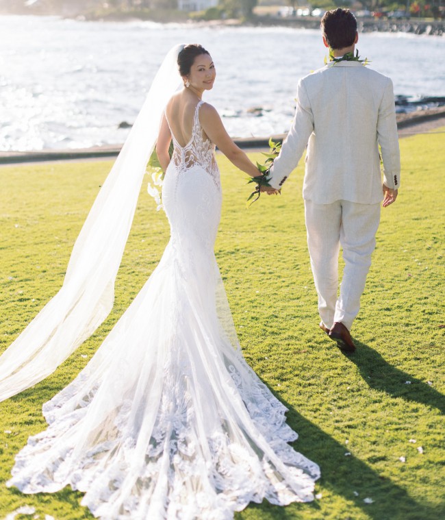 Dress has loops and buttons sewn in so you can bustle the train during reception.