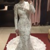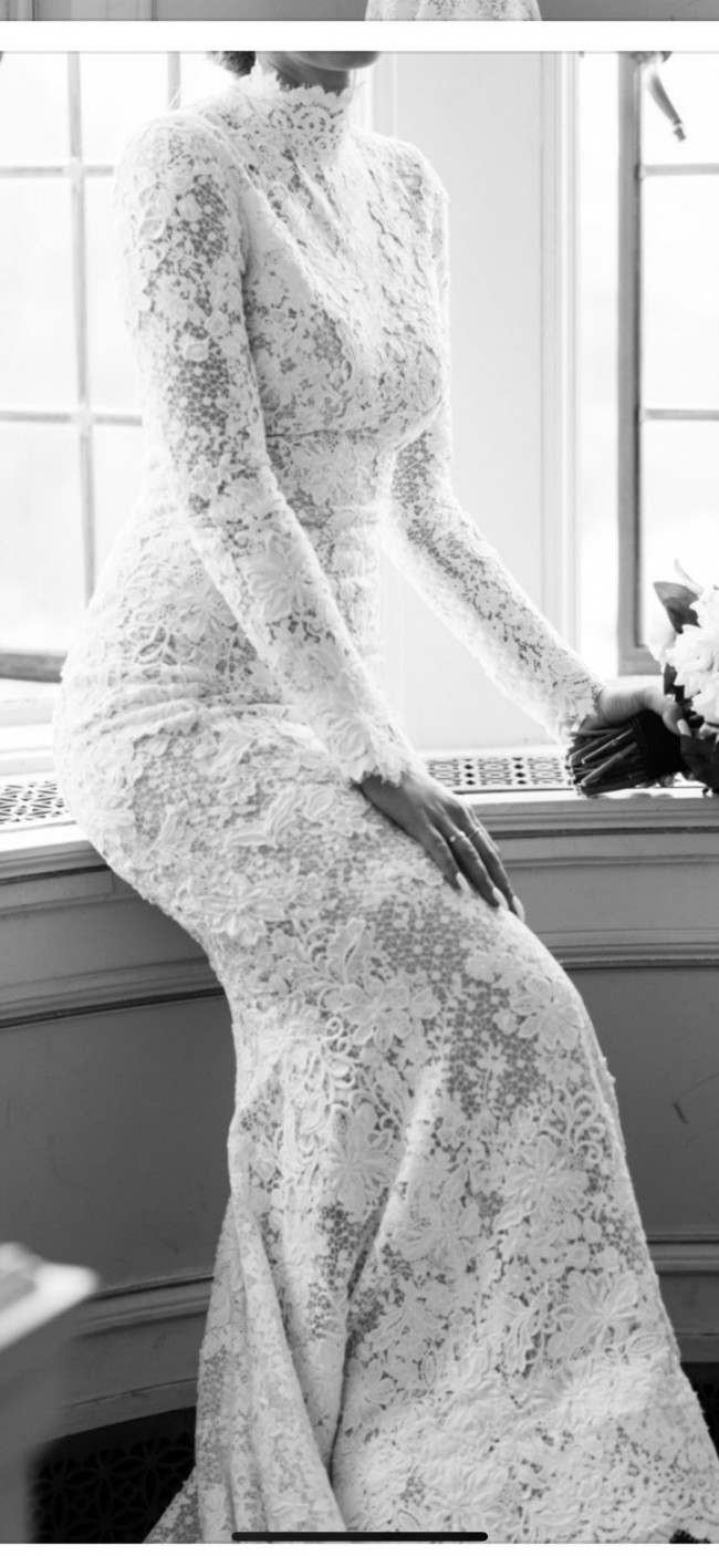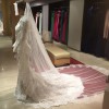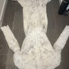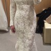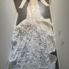 Pronovias Elvira cleaned in dust bag. The perfect dress for a fall or winter wedding! The back has a zipper and it is extremely comfortable. It comes with a long veil and extends past the train of the dress. The train can also be buttoned up for dancing!