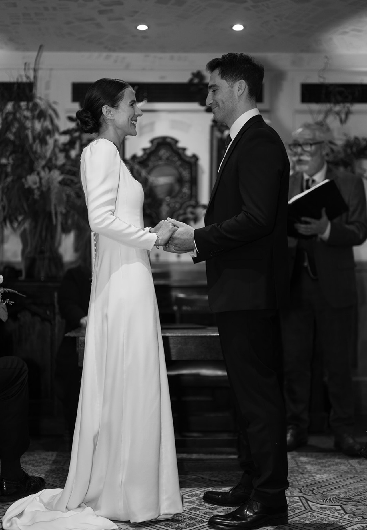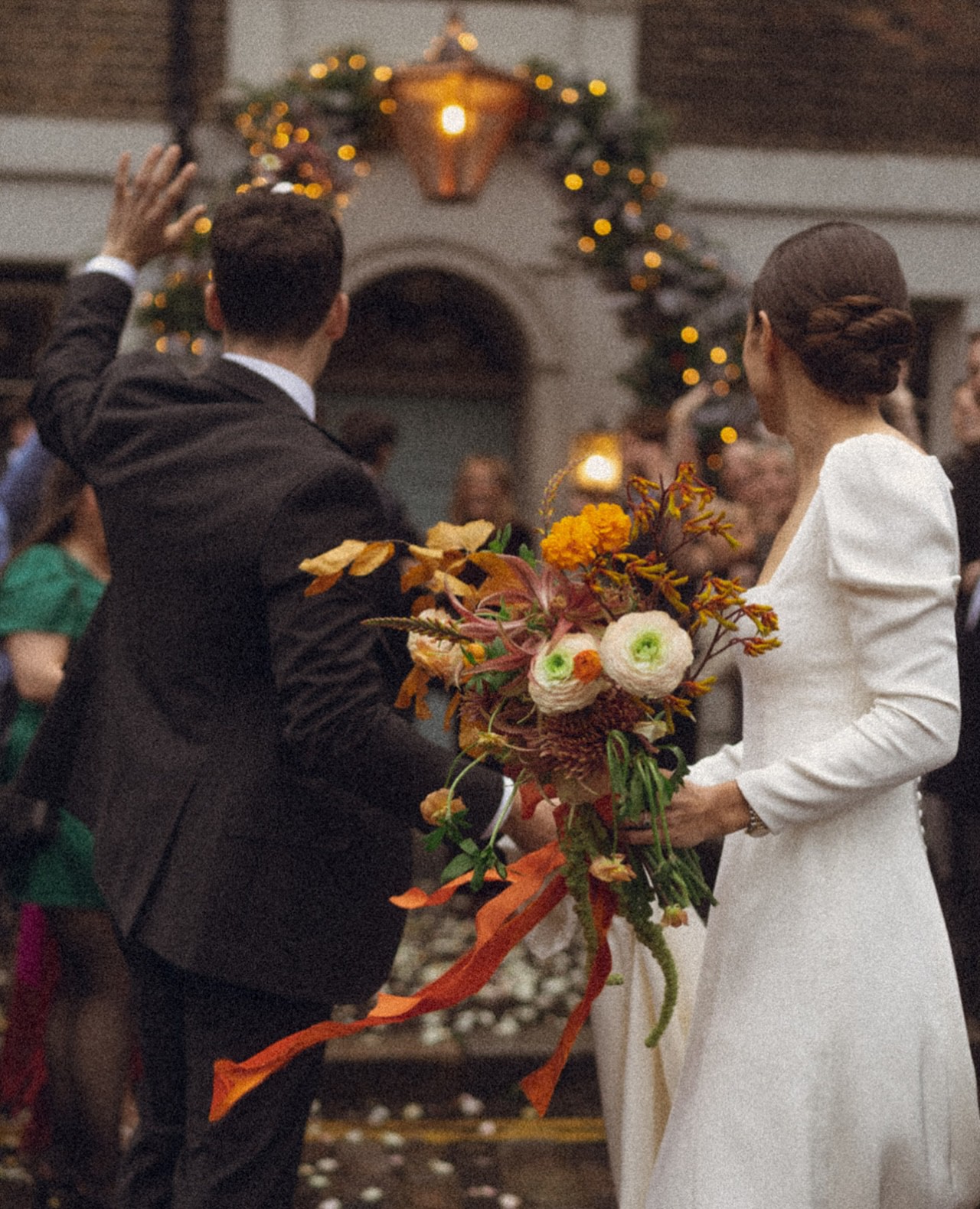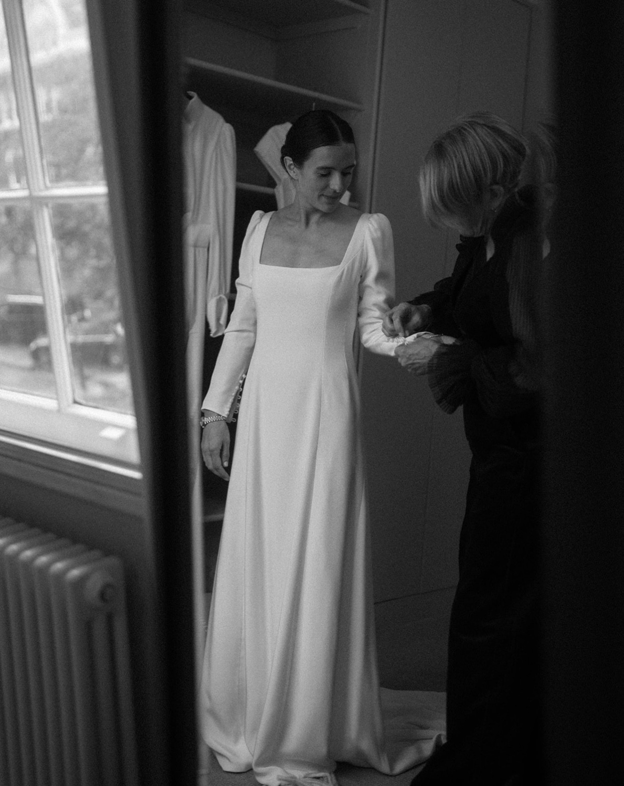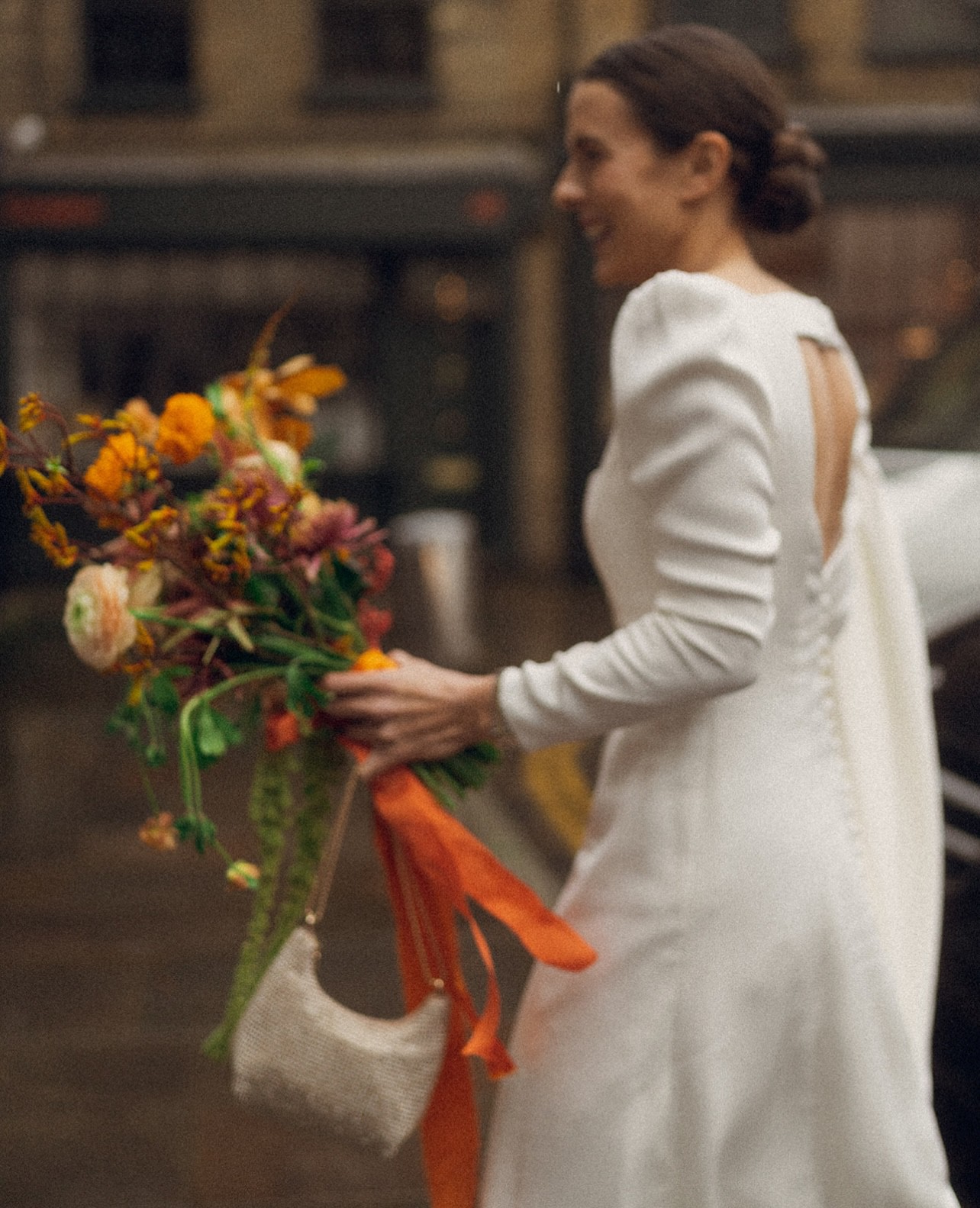 Bought this beautiful dress in a sample sale in mid-2024. In excellent condition, only wore for 1 hour on wedding day for an intimate indoors ceremony and has been dry cleaned. Altered to fit my body measurements as listed above - taken in at waist, sleeves shortened and taken in, top of skirt taken, hem taken up, bra cups added (could easily be taken out), and wrist strap added underneath skirt (can’t be seen from outside). All alterations done in-house by Andrea Hawkes, can send invoice proof. The dress was originally a Uk size 10 dress but would say with alterations would fit a UK size 8 best (or a large UK 6 / small UK 10).