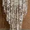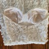 Gorgeous, secure-feeling bustier structure at the top, and flattering, flowy draping from the waist down, with all over beading on an open work lace. Center front opening on skirt, with slight crossover to create depth and movement. Super elegant and low key bohemian at the same time - easy and fun to wear, really unique.