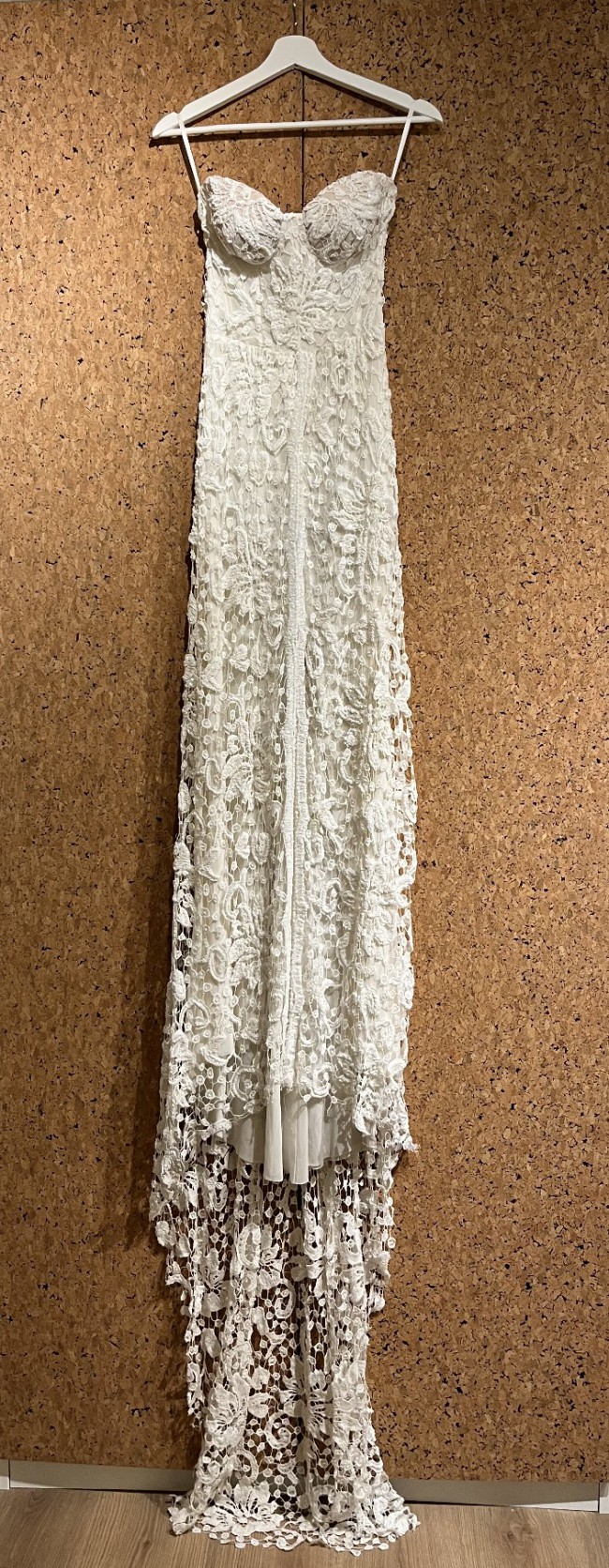 The dress was worn once and is in great condition, with a few unnoticeable tiny pulls in the lace at the bottom of the skirt - happy to send detailed images.