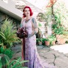 I desperately didn't want a white dress so Lace & Liberty custom made this dress for my elopement. This dress has a plunging V, sheer fabric in front, great support, very comfortable & easy to wear. It has a 3D applique, with pearl beads & mesh overlay. The bustle is even still uncut. I hope this dress brings you the beautiful feeling it gave me.