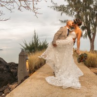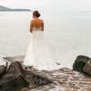 Iris by Savin London is a beautiful strapless/off shoulder (detachable straps) A-line gown with a stunning plunge neckline and 3D floral detail. It has an ivory lining which sets off the stunning 3D white flower detail and is absolutely breathtaking. I felt so amazing in this dress on my wedding day, it was so comfortable & light!