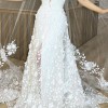 The "undercoat It is a beautiful sleek ivory gown with a split with a (not detachable) mesh overcoat with beautiful 3d flowers and petals . I loved this because it was a cross of a sexy silhouette dress with a twist of a statement bold wedding overskirt.
