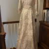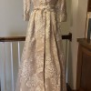 Stunning cream beige and metallic gold. Not altered, not worn. One of 3 dresses for my daughter’s wedding—so hard to choose! Would keep if I had another special event!