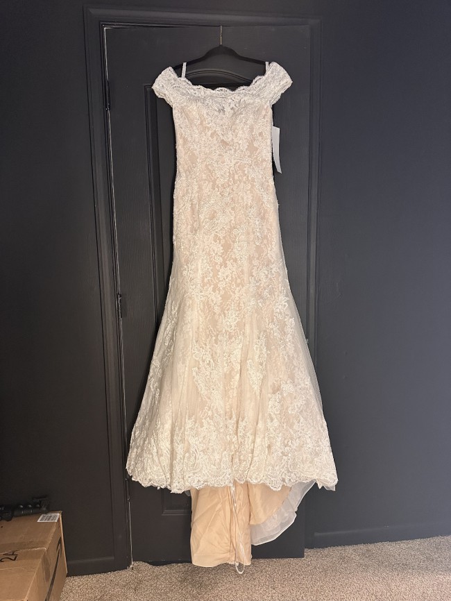 Never worn wedding dress, ivory champagne. Has a medium train length. Condition is new