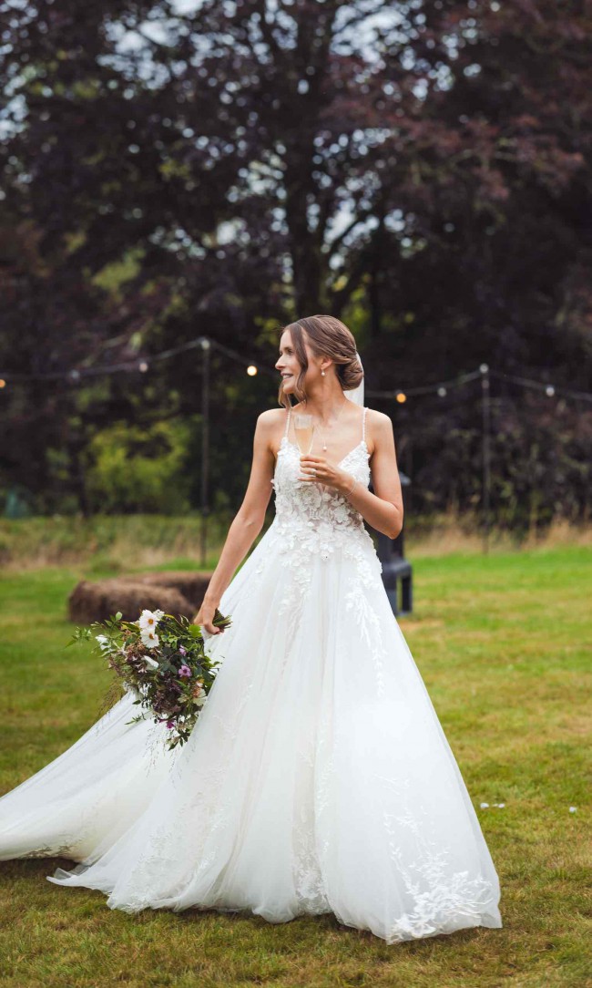 - Removing two layers of underneath skirt and horsehair hem so that the dress flows naturally more like A-line than a ball gown