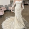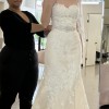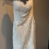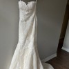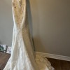 Brand new, never worn Pronovias dress. Natural lace gown. Very flattering shape and moves with you when you walk. Tag is size 8, no alterations were made. Beaded belt is included but is a separate piece.