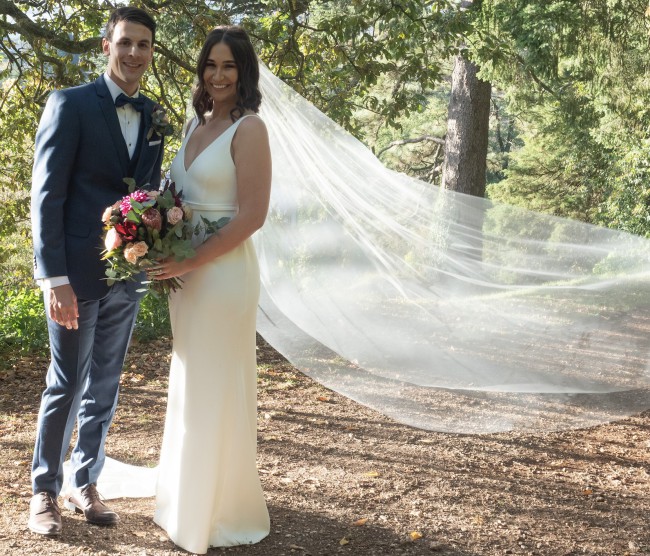 Handmade in Melbourne, Australia. Fitted ivory cleo dress with fitted skirt. Also including the Zara Chapel Length Viel RRP $299.