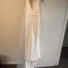 Deep V-Line bust and low back. The skirt fastens with zip & hook and eye. Fabric buttons along the waist. Straps are attached & easily altered. Made in 2021.
