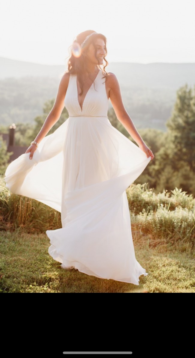 The dress is lovely, simple, gathered in the right places ! Belt was an additional accessory which can be removed.