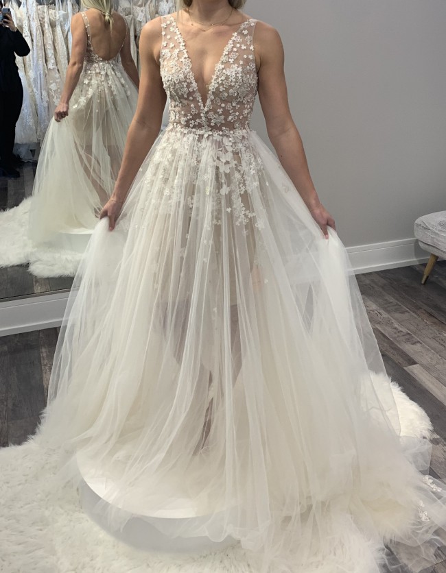 Very flattering Liz Martinez Ariel dress in ivory. Easy to make alterations with a good seamstress. Very good condition and dry cleaned.