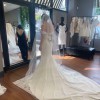 The dress was altered to include a bustle that hides underneath with a loop and ribbon system.
