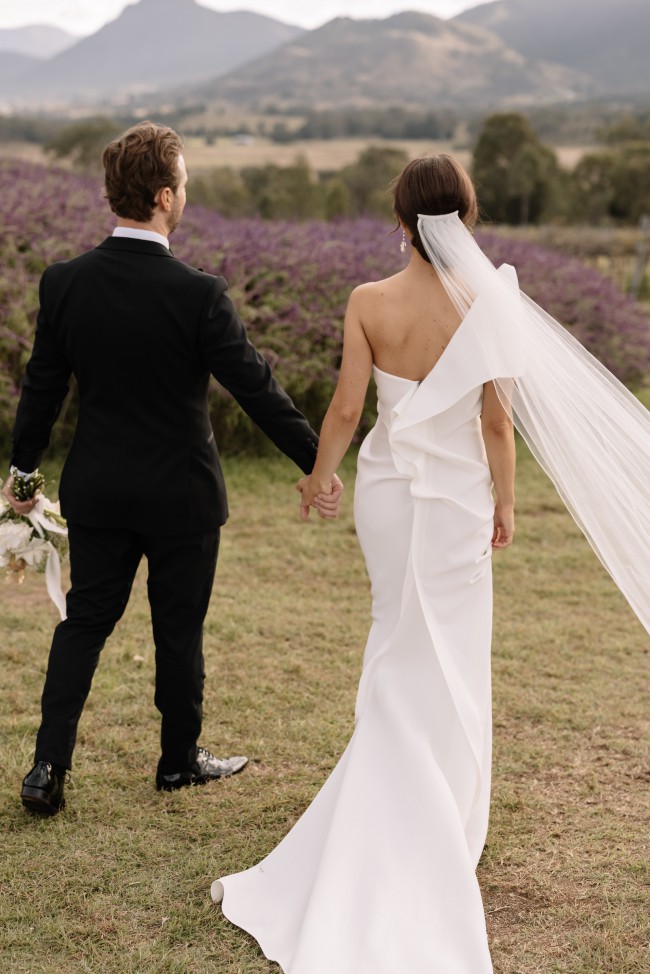 A beautiful Toni Maticevski gown I wore for my wedding in 2024. It was purchased and altered at Bluebell Bridal in Melbourne. I usually am a size 8 but my measurements fell between 8 and 10 so it is a size 10 gown but altered. Bonded crepe material with some stretch for incredible comfort. Stunning designer details for a classic dress with some modern flare. I think I will love this dress forever. Veil is also available for an additional $400 (RRP $700). It has a trim which mirrors the trim on the dress edging.