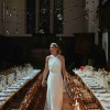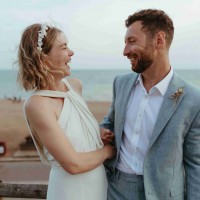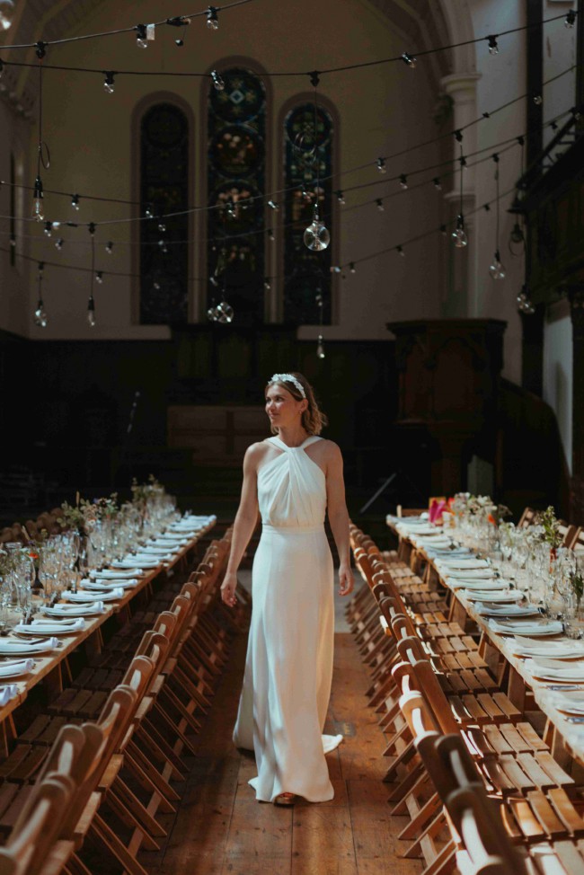A Bloom Laure de Sagazan dress. Dress in heavy draped 100% silk crepe, lined with cotton, with American neckline. Wide draped straps. Skirt fitted at the hips flaring at the bottom with small covered buttons. The dress was bought from The Mews in Notting Hill and the alterations were made in house to suit the previous owner. I bought this dress on Still White so it is 3rd hand but you would never know as it is still excellent quality. A truly beautiful dress to wear. I loved wearing this for my wedding in August. The dress is very flattering as it nips in slightly at the waist. It suited both day and evening so no need for an outfit change. As you can see, the train flows back really well. It dry cleaned really well. Please don't hesitate to get in touch with any questions. Very happy to discuss price if you are interested.