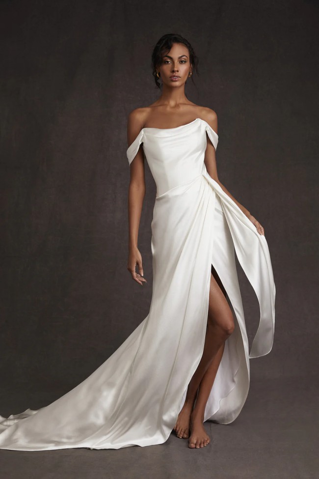 The Ilaria Gown is an elegantly modern gown, with a constructed interior corset, and finished with silk draping along the bodice and skirt, for an effortlessly romantic look.