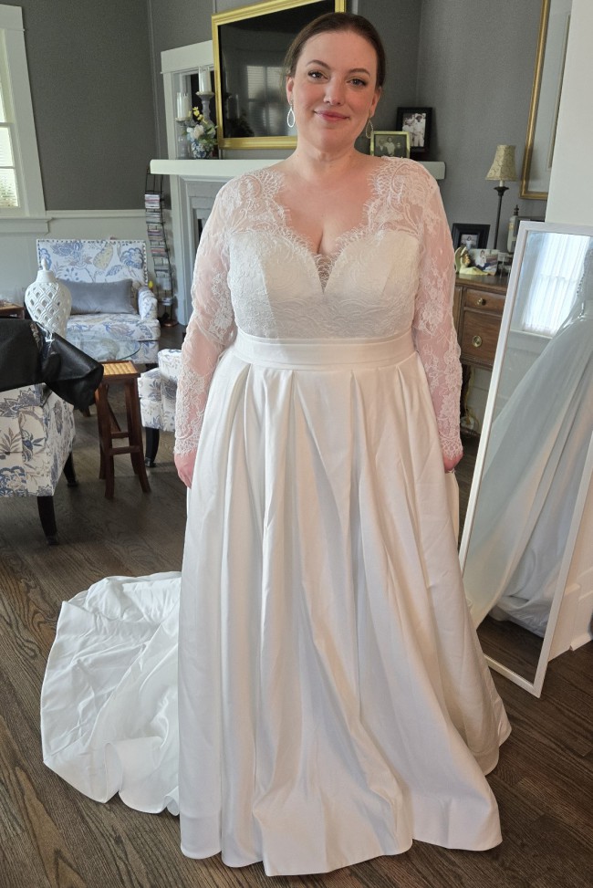 As you can see from the pictures I gained some wedding planning stress weight haha I bought another dress instead. This dress is such high quality and would be absolutely beautiful for a Fall/Winter wedding. Please let me know if you have any questions! Smoke free home.