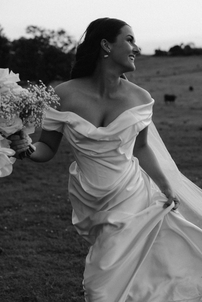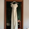 From 2024 collection, in pearl white heavy silk satin fabric. I had customised on the bodice to pin the dress to create the ruching appearance. The waist in the corset was taken in 1cm. I didn’t really need this however felt more comfortable. The corset is stretchy so I feel it is lenient with sizing. I wore 3 inch heels and I’m 167cm tall. I did hem the dress however not by much and still wanted it long to drag on the floor.