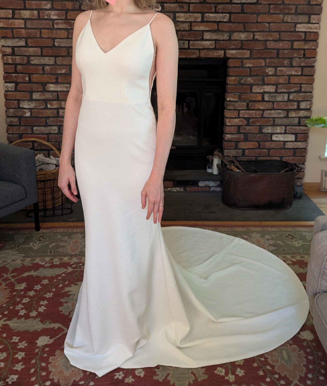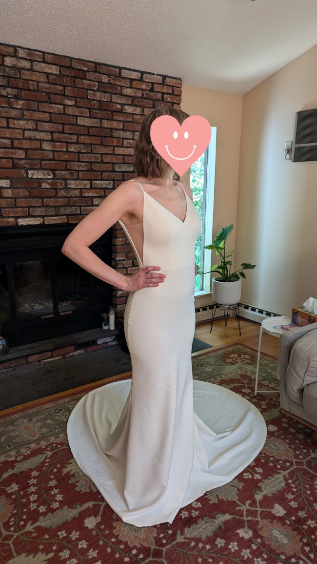 This stunning, unworn wedding dress is looking for its perfect bride! I ended up wearing a different dress on my wedding day, so this dress has never been worn. It has been slightly altered at the waist and hips (brought in a little, and can be brought back out), while the hem remains untouched for easy customization to your height.
