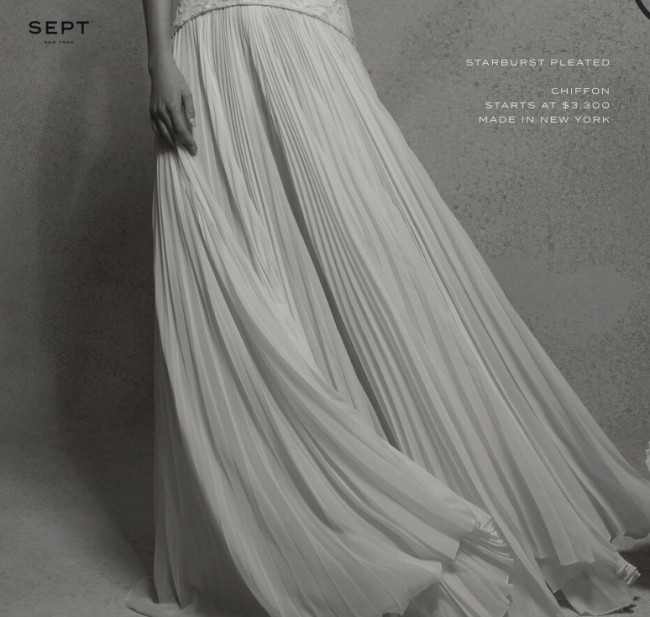 brand new in size US 6 / UK 10. This stunning skirt features a delicate starburst pleated design in luxurious chiffon, creating an effortlessly elegant and romantic flow. Handcrafted in New York, it offers a sophisticated silhouette perfect for any bridal or formal occasion.