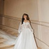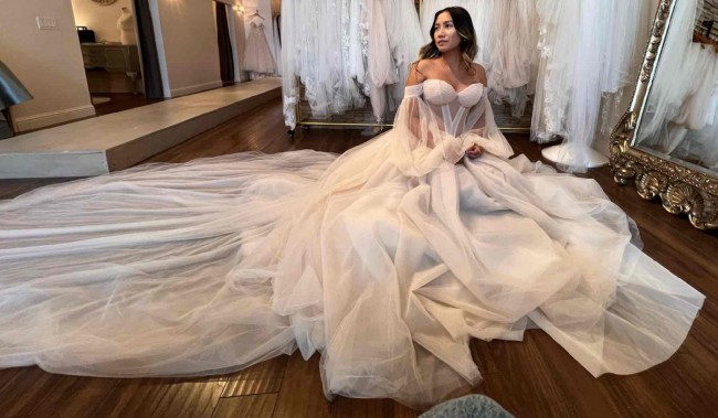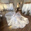 Dress has detachable sleeves, and a detachable bow was added to the back. Insanely long and dramatic train. A layer of organza was added so that the skirt is not sheer. Ordered in the ivory color in Galia Lahav sizing of 44.