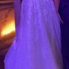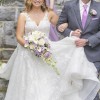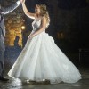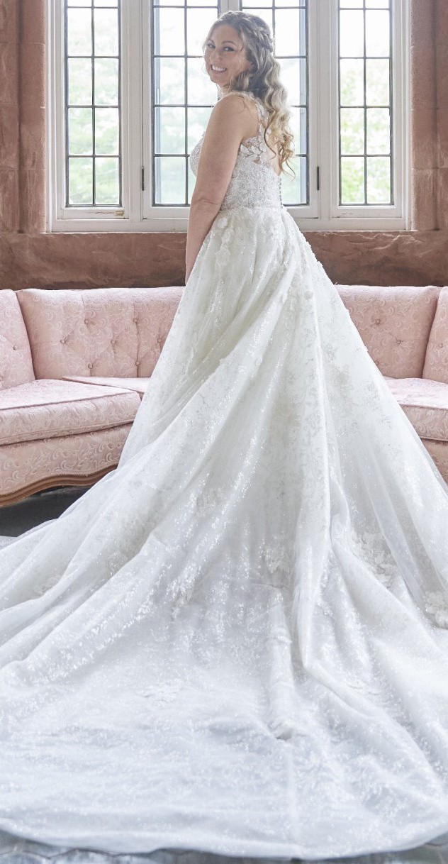The Martina Liana Style 1371 is a dramatic and sparkling ballgown designed to fulfill fairytale dreams. It features a full, voluminous skirt made of layers of glittering tulle, adorned with intricate lace appliques. The bodice is encrusted with sparkling beads, sequins, and lace, creating a textured and luxurious look. This gown stands out with its romantic cap sleeves and a striking keyhole back. The gown’s statement train adds to its regal appeal, making it perfect for brides seeking a princess-worthy wedding dress.