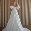 The Beau gown is a true romantic. Cut in our intricately textured beveled floral jacquard fabric, her dramatic silhouette is effortlessly airy. The sculpted bodice is endlessly flattering, and the detachable sleeves offer incredible versatility.