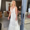 This dress was my ultimate dream, soft lace with a vintage style. It was comfortable to move in and dance and comfortable to eat. I danced a lot and so the bottom got quite dirty but it has been professionally cleaned by the bridal shop and is not very noticeable.