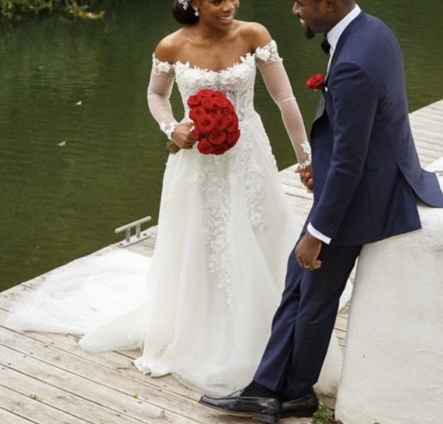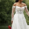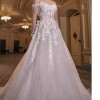 A stunning sheer silk tulle A-line dress with a fitted scoop neckline corset top and sheer long sleeves, all embellished with delicate embroidered lace framing the neckline, top, and skirt. The dress was so comfortable and easy to move around in but at the same time was so flattering as the corset synched my waistline perfectly. It was honestly my dream dress. It is in perfect condition and was dry cleaned and properly packed in the original galia lahav dress bag immediately after my wedding.