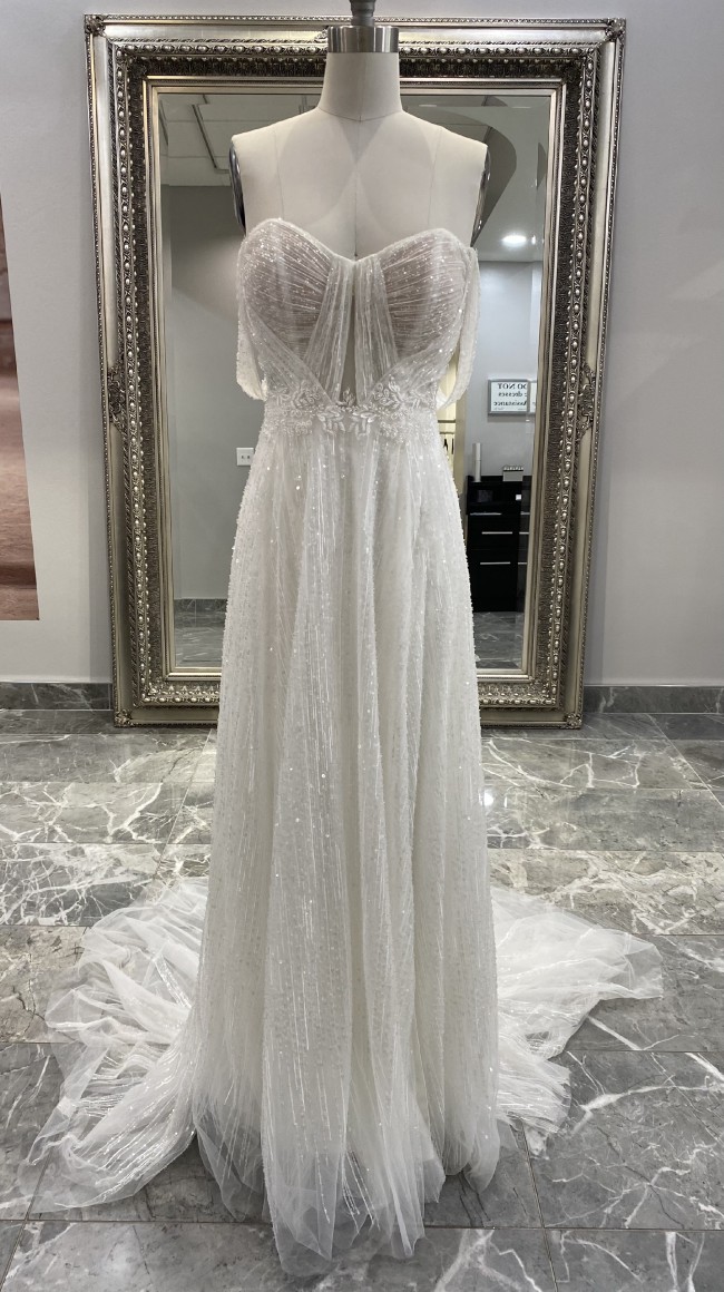 GLAMOUROUS SPARKLY BEADED A-LINE WEDDING DRESS WITH OFF-THE-SHOULDER STRAPS