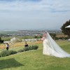 Horsehair cathedral length veil included.