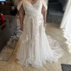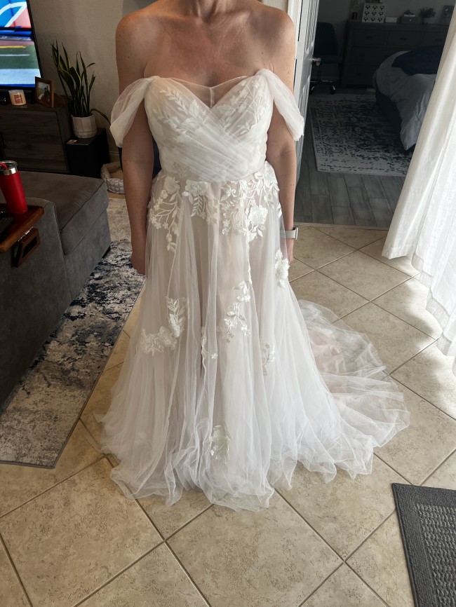 Romantic Sweetheart cross-cross tulle empire A-line wedding dress with floral appliques and romantic tulle drop sleeves. Cream with blush pink underlay. Purchased online, tried on, never used.