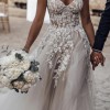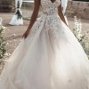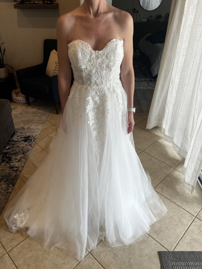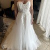 Sweetheart Flowy Empire A-line Tulle Applique Lace Wedding Dress with Sweep Train. White with floral appliques and sequins. Tried on once and didn't wear.