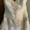 Signature Allure embroidery and Swarovski crystals make this ball gown stunning. The fitted bodice features a sweetheart neckline, ruched organza, and rich embellishment throughout. Sparkling crystals and embroidery continue to the tulle ball gown skirt. Beautiful train along with bustle buttons