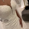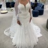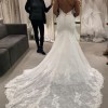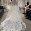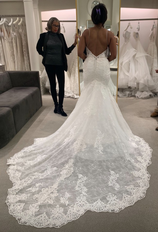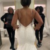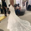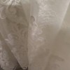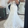 Unaltered, never worn, and absolutely stunning! This Essense of Australia wedding dress is the epitome of elegance and charm. Light, relaxed, and subtly sexy, it highlights your natural beauty. The dress features intricate cotton-style lace for a matte finish, beautifully paired with shimmering beadwork. The French-lace inspired silhouette and angled side cutouts create a unique texture and captivating detail. Soft beaded straps enhance the skinny plunge neckline and low V-back, adding a touch of shimmer. The sheer, scalloped train flows gracefully from the fitted silhouette, completing this exquisite gown.