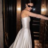 Strapless silk a-line gown with basque waist. Very minimal and beautiful!!