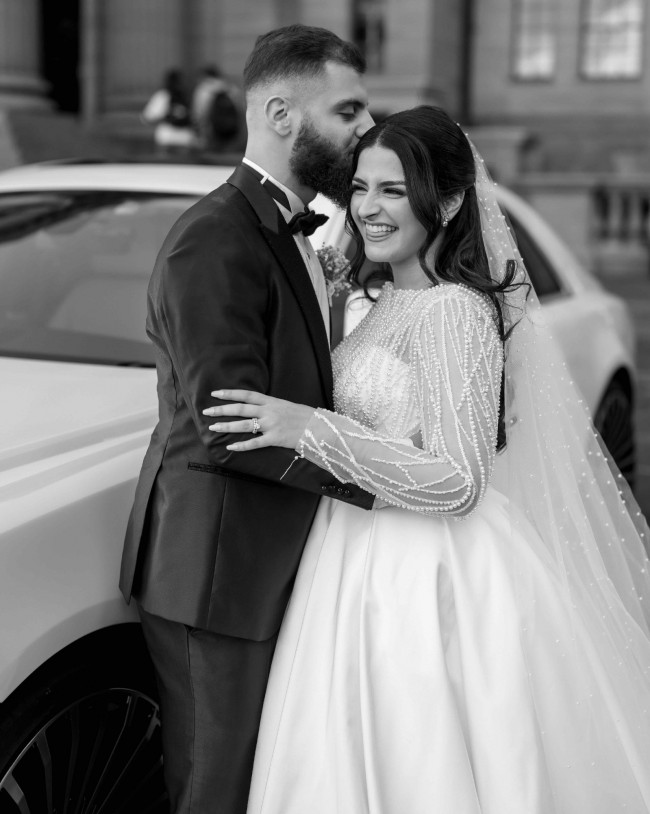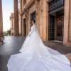 • Satin train with pearl bodice