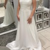 This wedding dress is perfect for the elegant bride looking for a romantic, boho look. The enchanting A-line silhouette flatters every figure, flowing effortlessly to the floor in luxurious white chiffon. The sweetheart neckline adds a romantic touch, while the ruching makes the dress classy and timeless.