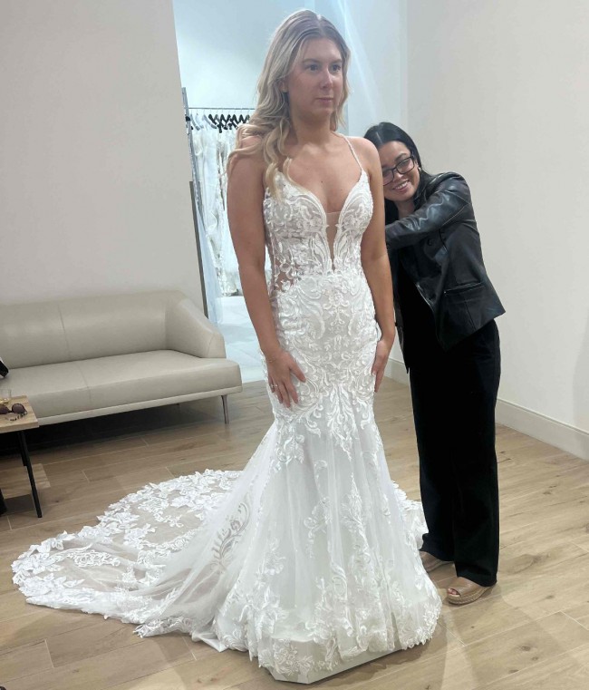 Size 10 Kitty Chen Alessandea. Purchased brand new from Marie Gabriel Bridal for $3,100. Worn once. Has alterations. I am 5’4” and 129 pounds. I wore 3 inch heels.