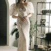 This wedding dress Yiri is a stunning strapless gown featuring a figure-hugging silhouette. The bodice showcases a corset design with visible boning, adding structure and a touch of modernity. The corset will also make you feel really comfortable on your wedding day so that you won't need to pull it up on teh day.