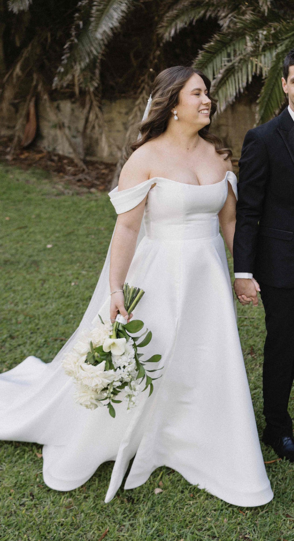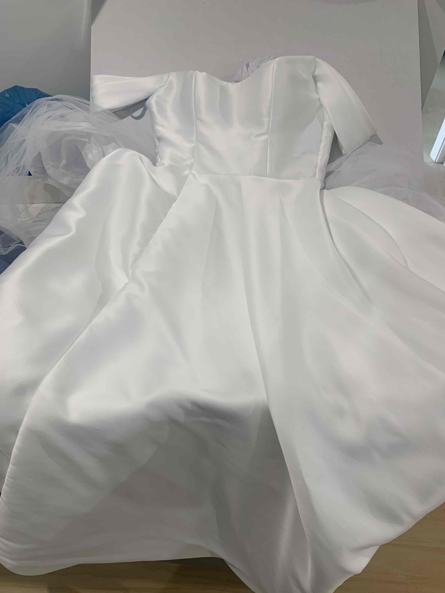 The most beautiful dress - it perfectly covers the arms and belly area which I can be self conscious about. It was so comfortable to wear while providing posture and boob support through the bodice that gave the most amazing figure. The bright ivory is also very flattering for paler skin.