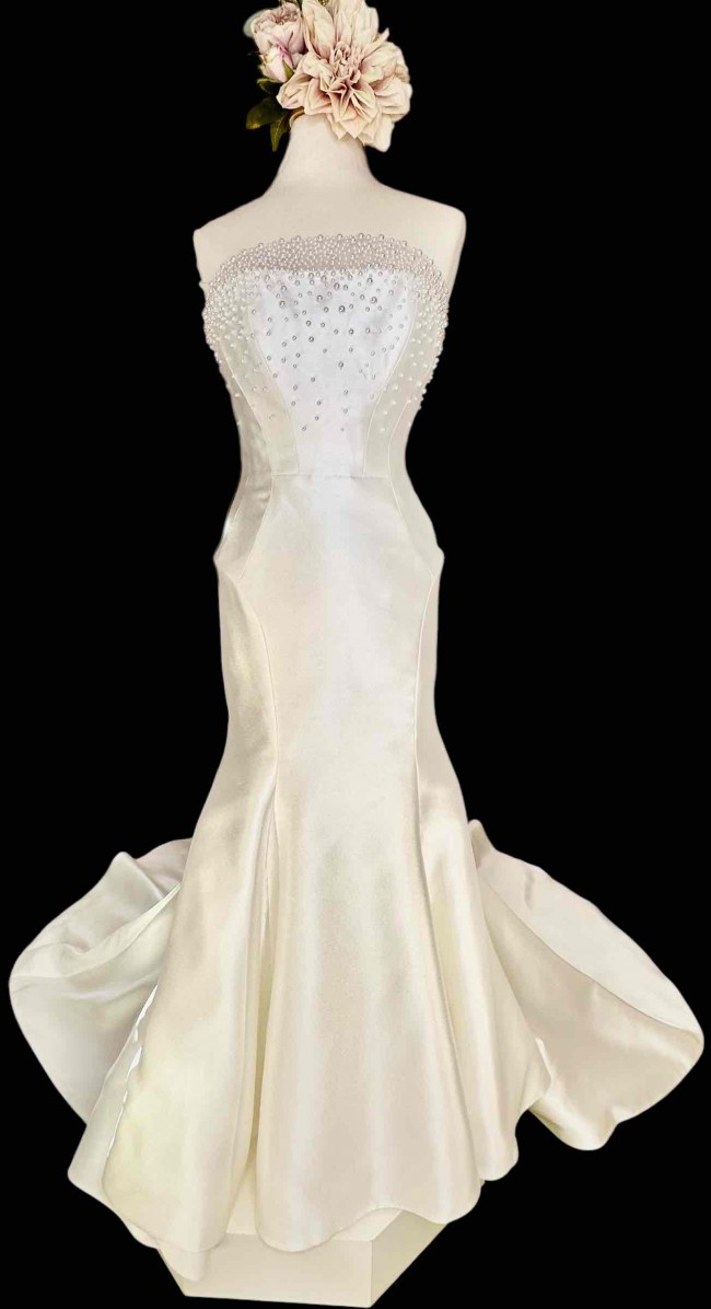 Strapless Pearl Bridal Dress Lined With Recycled Stretch Chiffon With Corset Detailing