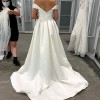 Whether the wedding is a grand affair or an intimate gathering, this off-the-shoulder satin ball gown wedding dress is sure to make a statement. Its classic design and luxurious details make it a timeless choice that will be cherished for years to come.