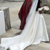 Its A-line silhouette is complemented by a full skirt that flows beautifully, creating a graceful and sophisticated look. The dress is finished with a long train, ideal for a grand entrance and perfect for brides looking for both modern elegance and classic beauty.
