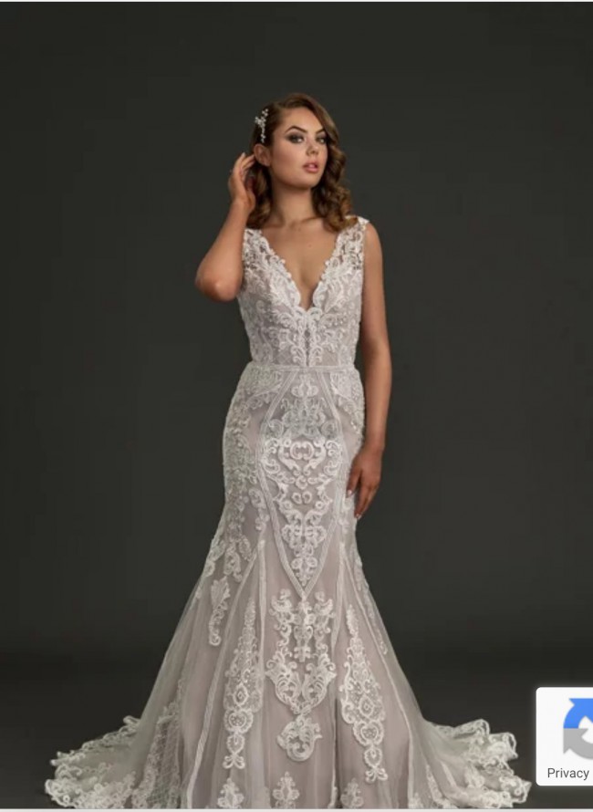 Modern Vintage at its best, mix in detailed straps, beaded bodice with an oh so flattering mermaids skirt. The makings of the Alexia Lace Mermaid Wedding Gown is the dress you have been searching for at the price point that will make you Smile.