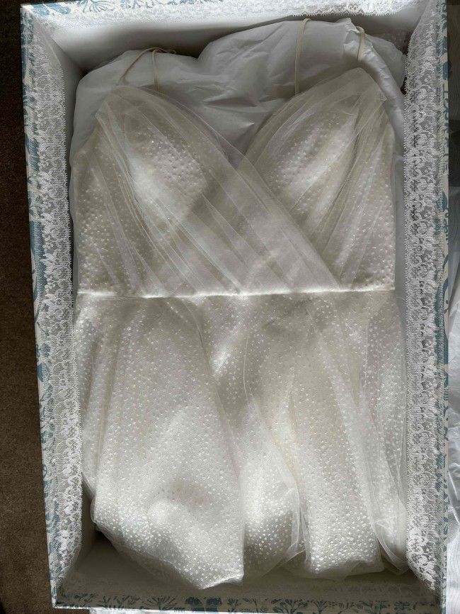 Sol by Tara Keely Wedding dress size [removed] Has been dry cleaned and boxed Top layer of Tulle at the back has been replaced due to a tear Originally bought for £2300 Beautiful dress with glitter which sparkle beautifully in the sun/evening lights