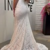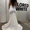 The V-neckline adds a touch of sophistication, while the backless design offers a daring allure that will leave your guests in awe. The spaghetti straps are both delicate and supportive, providing the perfect balance for a comfortable fit on your special day. Crafted in a pristine white fabric, this floor-length gown makes a statement as you celebrate love and commitment.