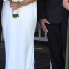 Worn on wedding day for 6 hours and then dry cleaned.